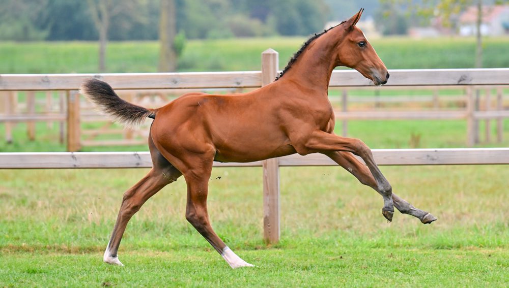 Pour ceux qui cherchent un futur étalon approuvé, Clovis vd Bisschop se présente comme un candidat idéal. Fils d’Emerald et issu de la jument Olleke Bolleke JW vd Moerhoeve, performante jusqu’à 1,50 m, Clovis combine sang, allure et potentiel sportif.