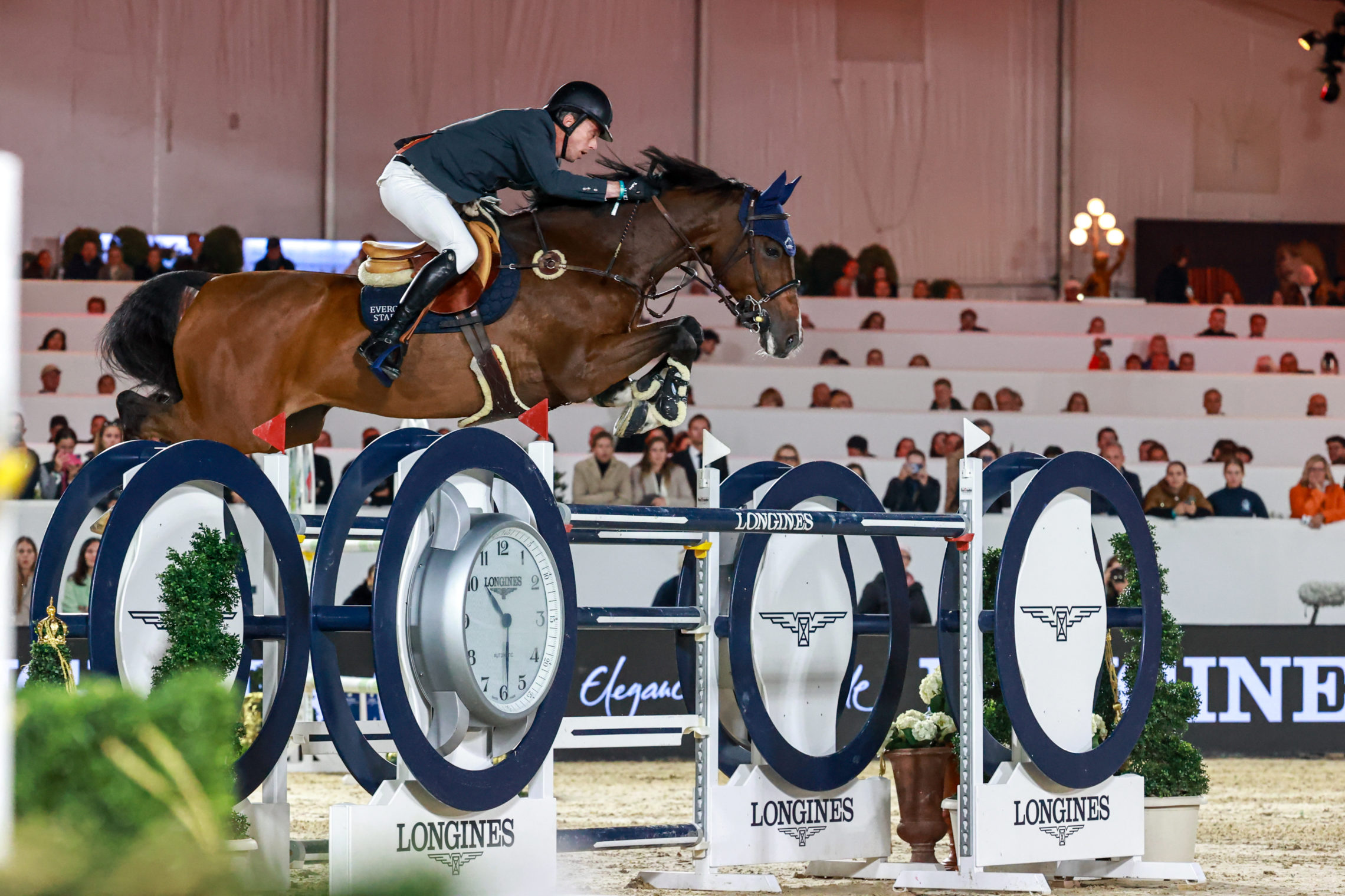 Peder Fredricson, avec Alcapone des Carmille (Diamant de Semilly x Heartbreaker), prend la quatrième place, juste devant Fernando Martínez Sommer (vainqueur de la League vendredi en compagnie de Pieter Devos) en selle sur Joep (Otangelo x Kojak), cette fois, a choisi la sécurité pour signer le cinquième et dernier double-zéro du soir. Hans-Dieter Dreher a lui tenté la carte du « J’y vais à fond on verra si ça passe » avec Vestmalle des Cotis (Baloubet du Rouet x Landor S). Mais ça n’est pas passé. Faute dans la combinaison. 6ème rang.
