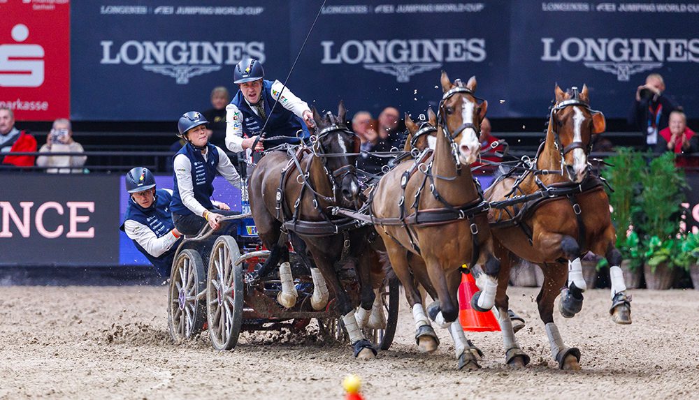 Dimanche midi, Leipziger Messe. Le public est là, les obstacles aussi. Et Dries Degrieck également. Lors de la huitième et dernière étape qualificative de la Coupe du monde d’attelage FEI, le meneur belge a dominé un plateau royal et après Malines, signe son deuxième succès de rang.