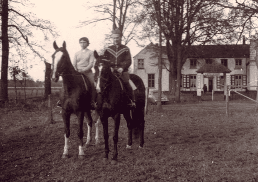 Mariette Withages: « Mon grand père était « gentleman rider », comme on disait à l’époque, dans les courses de pur-sangs pour amateurs donc. Il y avait quand même quelques champs de courses dans la région d’Anvers. Et il allait en Angleterre, en bateau, pour acheter des jeunes pur-sangs. Il les amenait en bateau jusqu’à Ostende et les débourrait sur la plage. Ensuite il les ramenait en train jusqu’à Anvers. C’était une sacrée expédition. J’ai donc toujours connu des chevaux dans la propriété de mes grands-parents à Schoten. On était là les week-ends et les vacances. Mon grand père attelait ses chevaux et on allait d’Anvers à Schoten. Un jour, là bas, j’ai failli faire avoir un infarctus à mes grands-parents et à ma mère… je devais avoir autour de trois ans, tout le monde me cherchait dans la propriété. Quand ils m’on retrouvé, ils se sont figés car j’étais dans un paddock au milieu des chevaux. L’un d’entre eux était couché sur le dos, les quatre fers en l’air et moi j’étais montée sur son ventre et je m’amusais à le faire aller à gauche et à droite en tenant ses jambes. Ils osaient à peine respirer de peur que le cheval se lève d’un coup…mais tout s’est bien passé.«
