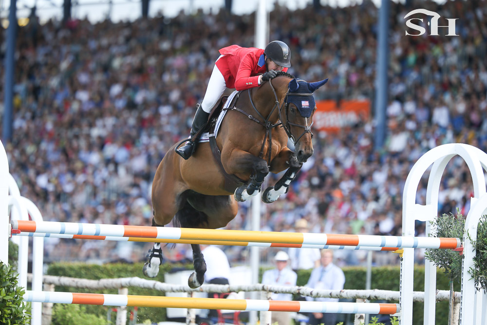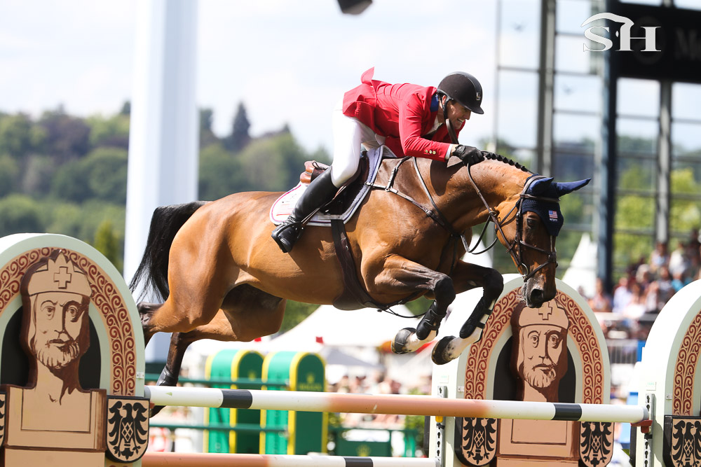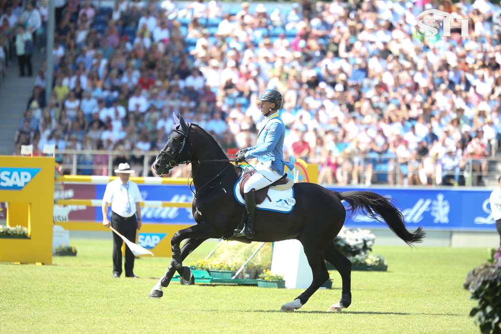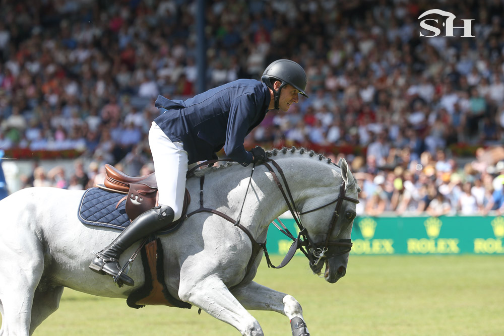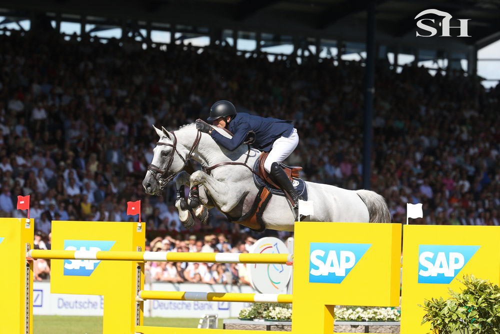 McLain Ward a donné une véritable leçon de management une nouvelle fois lors de ce CHIO. Azur a en effet participé à la première épreuve du concours mardi … et à la dernière dimanche, entre les deux, Mclain Ward a remporté le prix de l’Europe et le prix de North Rhine-Westphalia, les deux épreuves qualificatives pour le Grand Prix avec Contagious (Contagio) laissant à Kasper van het Hellehof le soin de faire la coupe et la consolante du samedi. Un pari quasiment réussi puisque l’américain se retrouve premier à s’élancer au barrage avec son impressionnante jument de 16 ans. Malheureusement, un peu optimiste sur l’ultime obstacle, ils partent de très loin et la faute est inévitable malgré un bon chrono de 40’’03!