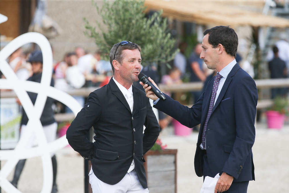 Parti en première position, José Thiry confirme son excellente forme avec une belle troisième place et énormément d’émotion grâce à Jalisco W van de Wolvenhoek (Vivaldi du Seigneur): « Je suis très content. J’avais annoncé huit partants au barrage et le compte était bien là. Premier à partir, c’est évidemment une place difficile, on n’a pas trop de repaires. J’ai fait un barrage assez serré et j’avais dit à mon propriétaire en sortant de piste que je pensais que nous serions dans les trois premiers si ça marchait bien … et cela a bien marché ! Je suis vraiment heureux d’autant que nous étions déjà troisièmes vendredi. Le cheval est vraiment régulier, je pense vraiment que c’est le meilleur cheval de ma vie tout simplement » concèdera le cavalier qui a pourtant monter Un Blanc de Blanc, Florie du Moulin, Sidoline van de Centaur ou encore Chat Botté du Ruisseau Z. « On nous demande beaucoup ce cheval mais je pense qu’il va rester avec moi. Ca ne sert à rien de vendre un tel cheval car on a du plaisir grâce à lui et aujourd’hui, l’argent, on ne fait rien avec alors que le plaisir, on ne sait pas l’acheter. Beaucoup de gens ne comprennent pas encore cela aujourd’hui. Malheureusement, aujourd’hui, c’est très difficile de faire des plans car j’ai beaucoup de mal à obtenir des sélections même si on m’a quand même envoyé deux fois en coupe des nations où nous avons fait deux fois très très bien en gagnant le Grand Prix 3* de Lons le Saunier et en prenant une 6ème place du Grand Prix au CSIO3* de Gorla Minore. J’espère pouvoir faire la tournée marocaine. Avoir sa place sur un cinq étoiles est très compliquée d’autant que je n’ai que lui. J’aimerais évidemment avoir d’autres chevaux à côté … mais visiblement, on pense surement que je suis trop vieux. Le plus important, c’est que je suis fier de ce que je fais et du boulot accompli. »