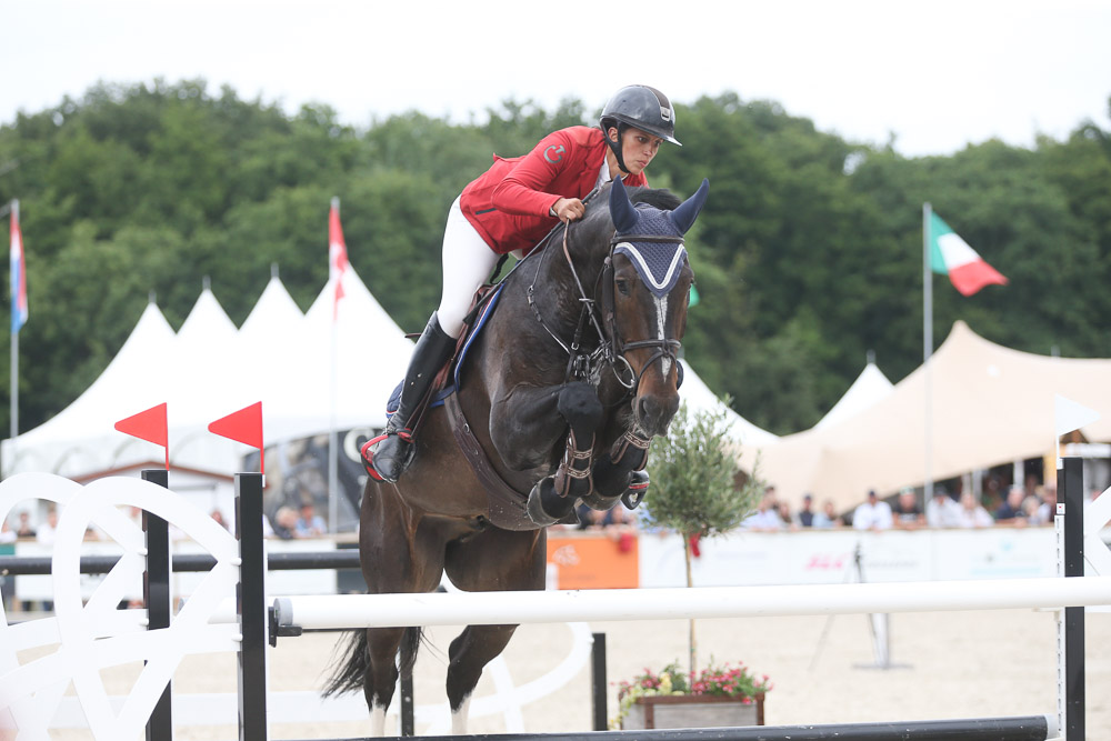 La suédoise Charlotte Mordasini Mcauley était sans aucun doute la cavalière au plus beau palmarès de ce barrage. En selle sur Tiny Toon Sémilly (Diamant de Sémilly), il est néanmoins bien compliqué de repartir après un tel évènement et le couple sortira finalement avec une faute.