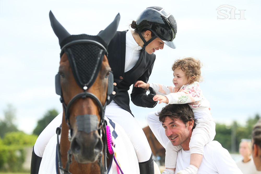 Le sourire était franco-suisse ce dimanche avec une Fanny Skalli Guerdat radieuse : « Je n’avais pas trop suivi le barrage avec l’accident qu’il y a eu. Cela a provoqué une coupure, il a fallu échauffer de nouveau les chevaux et se reconcentrer pour se remettre dans le bain … mais quand on a un cheval comme Jonka, cela facilite les choses. C’est une jument avec un cœur tellement énorme qui pardonne tout et en plus, elle a de gros moyens alors le sport est plus facile avec une telle jument. J’ai réussi à respecter mon plan qui était de tourner après le deux devant l’obstacle pour avoir une belle distance sur le double puis Jonka tourne tellement rapidement que j’ai beaucoup de chance. Tout venait bien et dans ce cas-là, on est rapide. J’avais la chance d’être formidablement bien entourée aujourd’hui avec mon mari, ma fille, sa nounou, les cavaliers et grooms de l’écurie. C’est vraiment formidable. Je suis vraiment très contente d’avoir remporté le concours du parrain de ma fille et on reviendra l’année prochaine car c’est un top concours. »