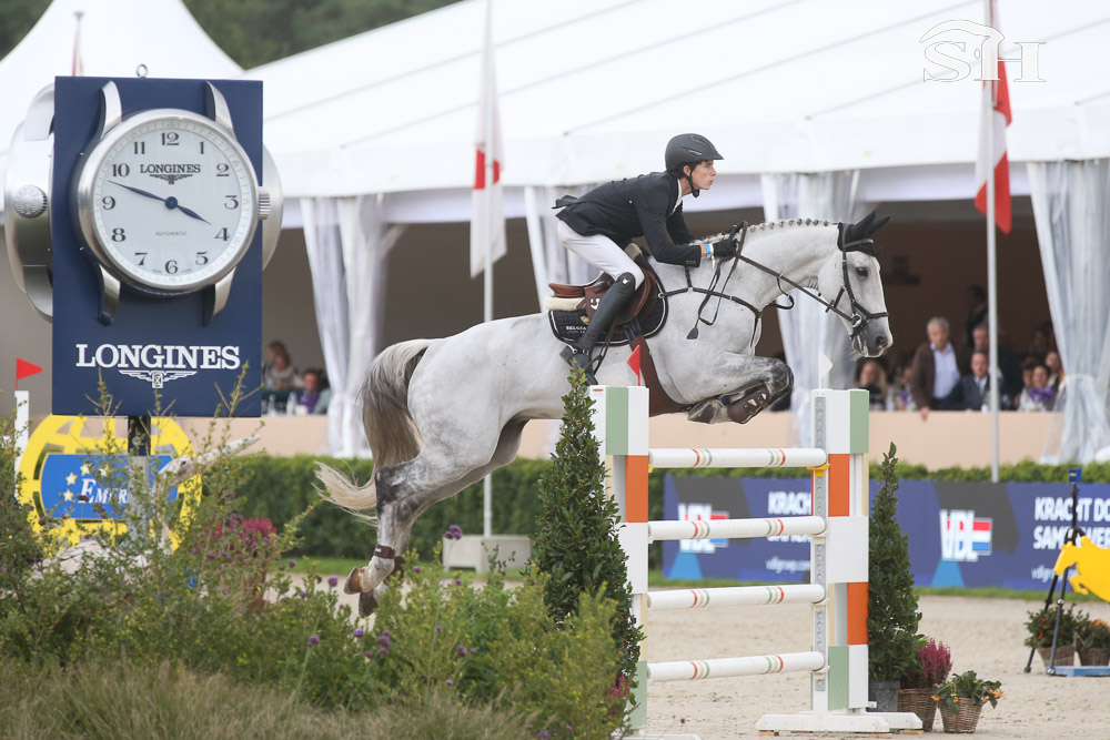 «Nous avions acheté Luna l’an dernier chez son éleveur. Elle sautait vraiment très bien et en début d’année H&M a décidé d’en acquérir la moitié pour la sécuriser car je pense que c’est un cheval avec beaucoup de potentiel. Elle est forte et un peu chaude alors je pense qu’elle a besoin de temps. Nous avons essentiellement fait des petites épreuves et la semaine passée, elle a très bien sauté lors du Grand Prix 4* de Sentower Park avec juste une petite faute et je me suis dit que c’était le moment idéal pour participer à ce championnat. Je savais qu’elle était prête. Elle avait déjà participé à quelques trois étoiles mais en fait, je n’avais pas trop d’autres possibilités car j’ai eu un peu de mal chance avec Moya vd Bisschop qui a été opérée de coliques il y a quelques semaines … je n’avais donc pas tellement d’autres choix … mais j’avais le sentiment qu’elle était prête. Cette année, il y avait beaucoup de jeunes chevaux ce qui explique tous ces rebondissements mais c’est une très bonne nouvelle pour l’avenir de la Belgique car on a vu quelques très bons chevaux. Avant la dernière manche, je savais que je n’avais pas droit à une barre mais pour être honnête, il ne faut pas trop penser à tout cela. Il faut rester concentrer sur le parcours et faire confiance à son cheval en le montant bien. Elle a sauté magnifiquement bien. Evidemment que cette performance va changer mon programme mais je pense que je vais l’emmener à Oliva pour refaire de plus petites épreuves et travailler son contrôle. Cela permettra aussi à Katanga d’avoir de véritables vacances car elle a sauté beaucoup de très grosses épreuves. Ces dernières semaines, elle a sauté quelques petites épreuves pour être un peu sans pression et j’aimerais elle aussi l’emmener à Oliva mais juste pour qu’elle prenne le soleil et qu’elle puisse profiter d’aller à la plage. Je pense que mon objectif pourrait d’aller comme deuxième cheval lors de coupe du monde comme Lyon ou à Genève. Luna est une jument avec une mentalité exceptionnelle qui veut toujours aller de l’autre côté. Elle n’a peur de rien ! Vous lui mettriez une maison devant elle demain, elle irait essayer de la sauter sans se poser de question … un peu comme Katanga d’ailleurs ! Elle ne prend pas peur. Elle a beaucoup de sang et de qualités. Il faut juste avoir un peu de contrôle car elle peut être très chaude. » réagira Nicola Philippaerts.