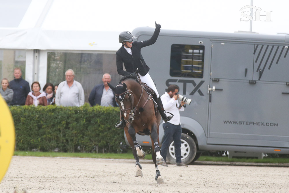 Il n’en reste plus que trois mais Maartje Verberckmoes reste calme avec le magnifique Guidam’s Willow the second (Willow x Indoctro) à la somptueuse galopade. Le couple signe le double sans faute et s’en satisfait aisément.