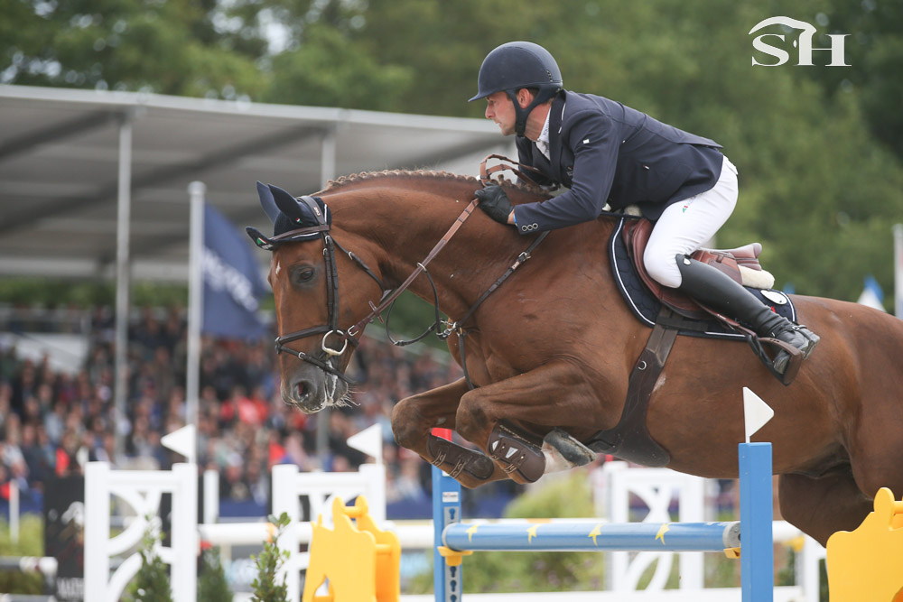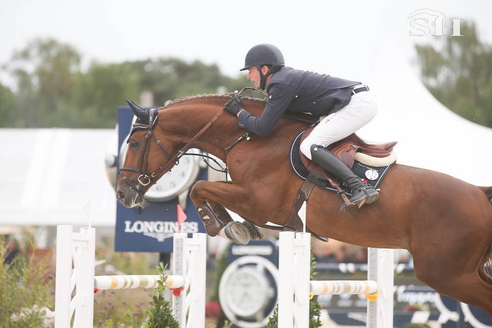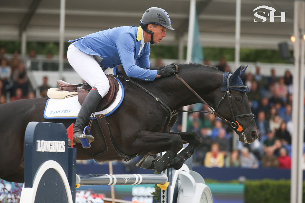 Mais un autre allemand sait faire trembler le chronomètre ! Christian Ahlmann s’élance avec Solid Gold Z (Stakkato Gold). Le tracé est somptueux et la prise de risques maximale … malheureusement un peu trop grande même. 36’’56, c’était largement plus rapide …. Mais la barre du dernier obstacle tombe !
