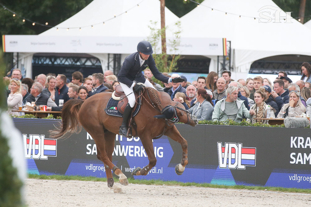 Le jeune hollandais Kars Bonhof ne pourra lui non plus rivaliser avec le chronomètre mais son impressionnant Hernandez TN (Kannan x Numero Uno) qui aura démontré de moyens phénoménales et une aisance remarquable même si la perte d’un œil aurait bien pu lui couter sa carrière mais il semble qu’il n’en est rien ! « Dans son année de 6 à 7 ans, il a eu un furoncle à l’œil mais on n’a pas trouvé de suite ce que c’était et cela s’est infecté … et on a été obligé de lui retirer son œil. Nous avons recommencé doucement et évidemment, il y avait un doute évidemment pour la suite de sa carrière car il voit évidemment moins bien. Nous avions de grands espoirs placés en lui mais quand on le voit aujourd’hui, on se dit que cela ne le gêne pas vraiment et qu’il s’y est habitué. Nous avons fait cette année nos premiers pas en 5*. C’est quelque chose de nouveau autant pour lui que pour moi … mais il est vraiment fantastique. Evidemment pour une épreuve telle qu’aujourd’hui, nous ne pouvons pas encore jouer le chronomètre. Nous allons encore progresser mais pour le moment, je me contente de jouer le double sans-faute dans un temps raisonnable. » réagira le jeune pilote hollandais du team Nijhof … qui espère conserver sa monture pour faire ses débuts au plus haut niveau.