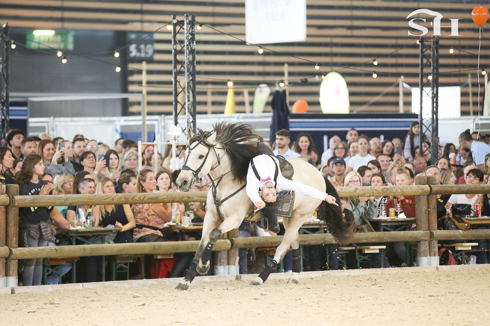 Cette année, Benoit Soumille et son équipe du Caval’Show étaient les invités vedettes du cabaret d’Equita Lyon avec pas moins de 7 représentations par jour dont trois dans le cabaret de midi. Au menu, un numéro de poste hongroise qui est certes toujours impressionnante mais que c’est difficile de pouvoir rivaliser quand le roi de la discipline, Lorenzo, fait lui aussi partie des invités d’Equita. Néanmoins lorsqu’on imagine le travail que représente un tel spectacle, cela ne fait que de confirmer encore un peu plus le niveau de maîtrise atteint par Lorenzo qui est du coup encore plus impressionnant.