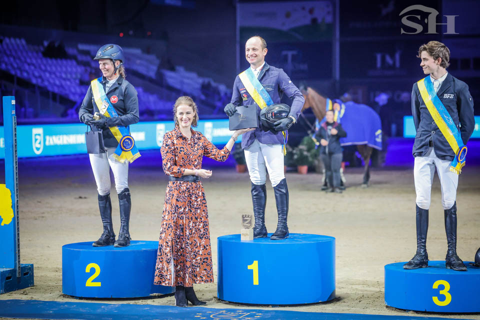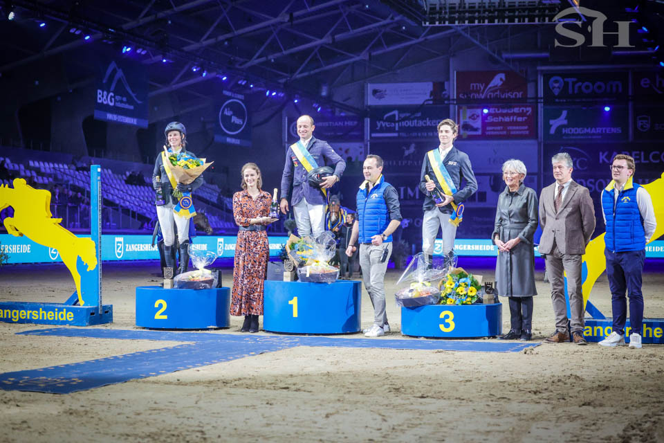 En s’imposant dans le Grand Prix 4* 1m55 du studbook Zangersheide, Michael Jung a une fois de plus tenu la dragée haute à des spécialistes de la discpline comme Marlon Modolo Zanotelli. Le Brésilien montant Heureuse Nouvelle WH (Cardento 933 x Indoctro) était bien parti pour l’emporter en signant le meilleur temps des neuf barragistes. Malheureusement pour lui, le dernière obstacle allait en décider autrement. Il échoue finalement à la 5ème place entre Max Kühner, 6ème avec Up Too Jacco Blue (Chacco Blue x Ard VDL Douglas) et Annelies Vorsselmans premier double sans faute avec Kurly V/D Gorten (Thunder vd Zuuthoeve x Celano), qui termine donc 4ème.