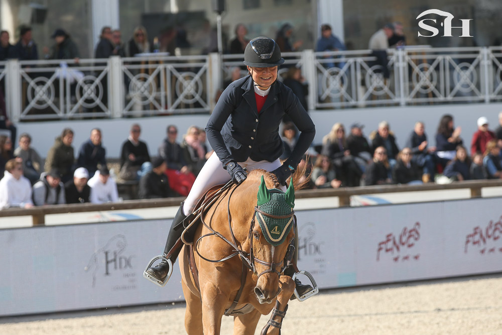 « J’ai fait le choix de venir sur ce concours en n’emmenant qu’Arqana pour le championnat et aucun autre cheval. Je voulais vraiment rester focus sur mon objectif. C’est un évènement important pour nous. Je ne voulais pas spécialement viser la victoire aujourd’hui. Je voulais juste faire un parcours sans faute en serrant mes virages et finalement, ça a suffi. Je ne pensais pas que le tour serait si fautif mais le 4, le double numéro 6 et le 10 ont vraiment effectué leur travail. Il est clair qu’avec ma jument, on se connait par cœur et ça aide pour des parcours comme aujourd’hui. Maintenant, on va essayer de continuer à faire du sans-faute. Je suis venue faire le championnat pour la première fois l’an dernier et nous avions fini sixième, nous verrons bien la suite dimanche. Je n’ai pas de plan précis, juste le souhait que l’on reste froides dans nos têtes et d’essayer d’aligner les 0.