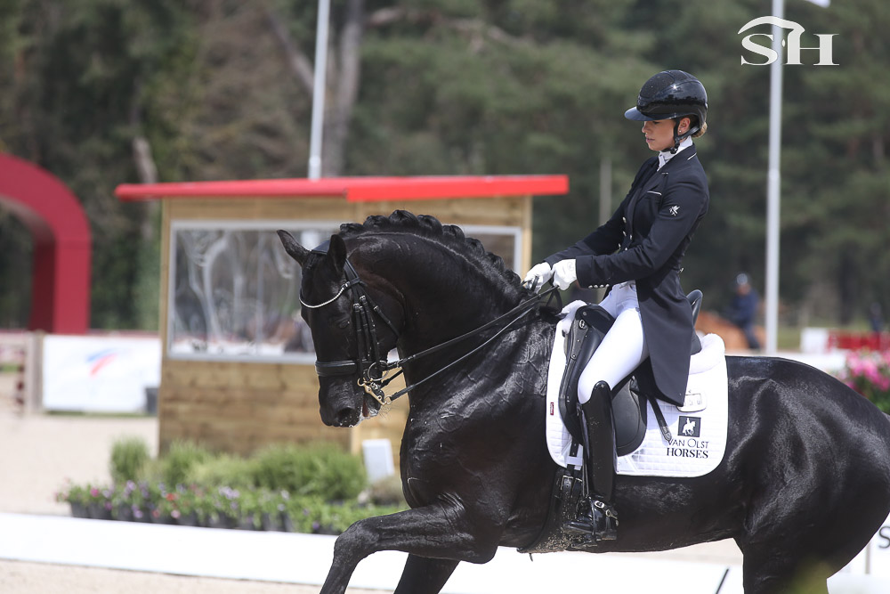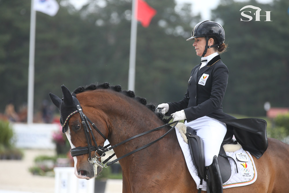 « Je suis une grande fan de Jean-Jacques Goldman et j’assume tout à fait ce côté francophone. Je trouve que les musiques parlent d’elles-mêmes et allaient très bien sur le cheval. Ca lui va comme un gant et il adore cette épreuve. Flambeau est vraiment en pleine progression. Il y a une énorme concurrence et être 4ème à un tel niveau, c’est génial … Le podium n’est plus très loin. On va continuer à bosser pour y arriver d’autant qu’il a encore une énorme marge de progression. Au niveau technique et au niveau force, je pense qu’il est encore loin du maximum de ses capacités. C’est un cheval assez émotif mais qui me fait de plus en plus confiance. Les progrès s’en ressentent et je pense qu’il sera encore beaucoup mieux dans un an … avec évidemment les JO en ligne de mire. Même si notre gros objectif est avant tout de réussir à qualifier l’équipe belge pour les JO cette année lors des championnats d’Europe. La piste ici à Fontainebleau est vraiment très grande et certains chevaux peuvent se sentir étouffer car c’est impressionnant. Mais au final, pour Flambeau, j’ai l’impression que plus il y a des choses à voir, plus il est cool. Il ne fait que grandir dans sa tête et dans son corps. »