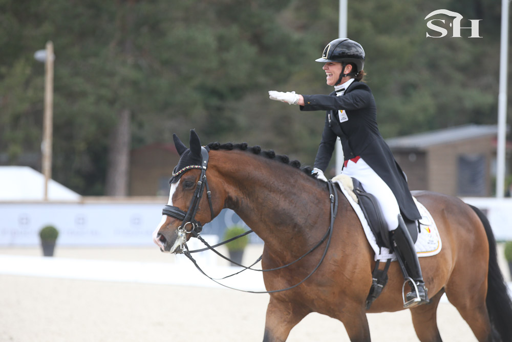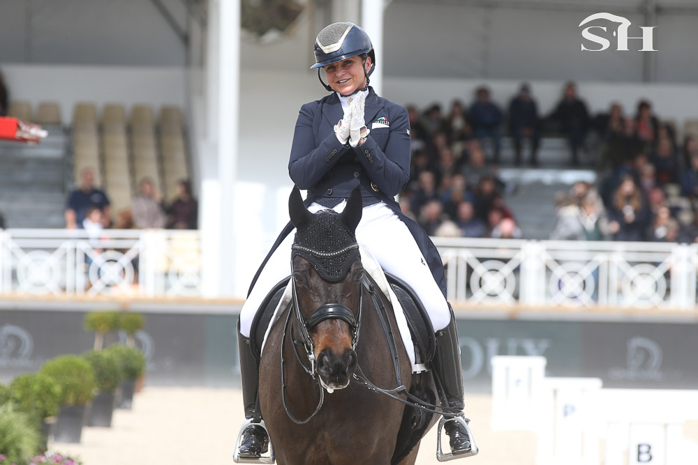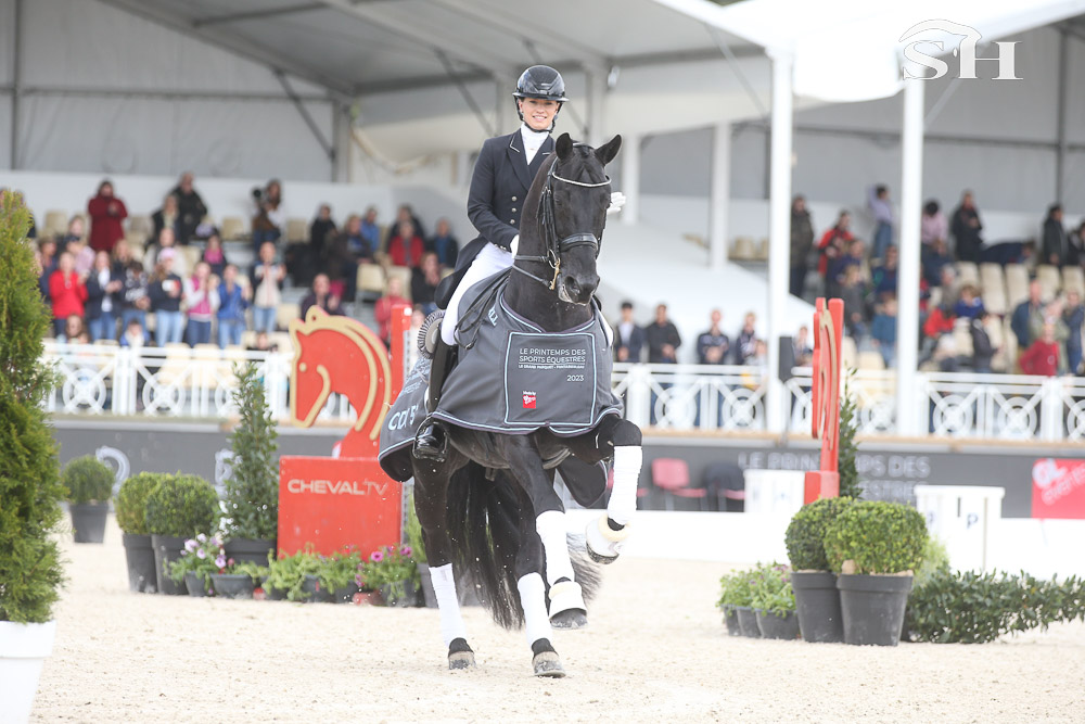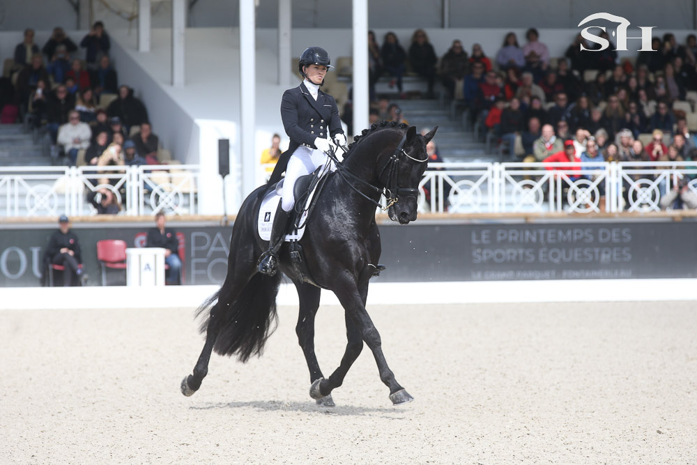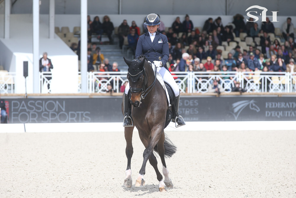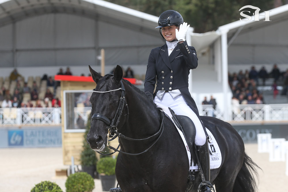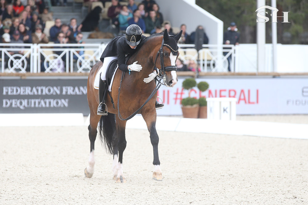 « Je voudrais avant tout remercier les organisateurs de nous permettre d’avoir un évènement de cette qualité, c’est vraiment un plaisir et je voudrais également remercier les propriétaires de ce cheval de me l’avoir confié et de m’avoir laissé le développer comme je l’entendais. J’étais très heureuse de sa performance d’hier car il est resté 6 mois à travailler à la maison sans sortir au concours et il peut parfois être un cheval très joyeux. Il a été vraiment très concentré tout au long du Grand Prix alors qu’aujourd’hui, c’était seulement son deuxième Freestyle de toute sa vie. Je ne savais pas du tout comment il allait réagir dans cette immense piste. Il est vraiment resté avec moi et je suis vraiment fière de lui.» glisse l’amazone allemande.