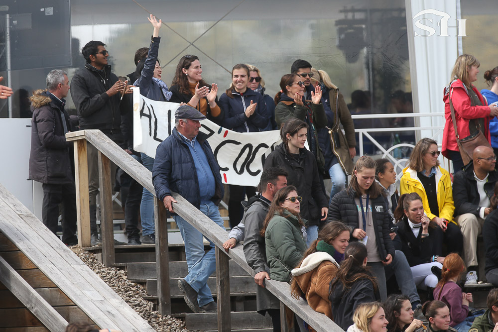 Grande favorite, Charlotte Fry a tenu son rôle avec un récital magnifique de son impressionnant étalon Glamourdale (Lord Leatherdale) qui est tout simplement au-dessus de la mêlée autant par son charisme que la classe de son galop et son équilibre.