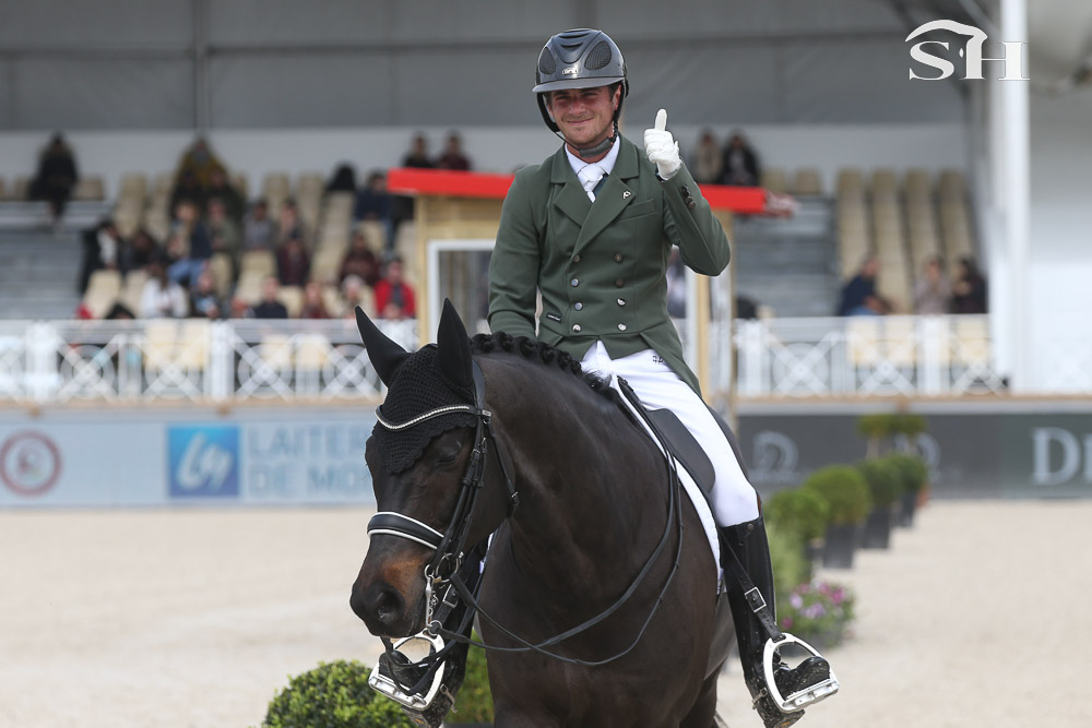 Meilleur français la veille, Corentin Pottier réitère une nouvelle fois sa performance avec Gotilas du Feuillard (Totilas) échouant juste derrière la belge mais avec ses meilleures notes à ce niveau d’épreuve,tant dans le Grand Prix que dans le Freestyle, alors que le cavalier de Pamfou dressage évoluait quasiment à domicile.