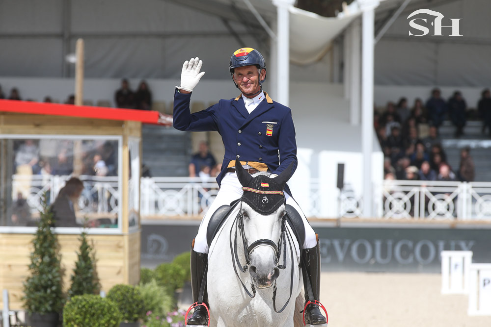 Sur la troisième marche du podium, l’espagnol Juan Antonia Jimenez Cobo était heureux de retrouver Fontainebleau où il avait concouru il y a de nombreuses années. Fort de son expérience, il réussit ici lui aussi ses meilleures notes aussi bien dans le Grand Prix que le Freestyle avec son étalon Lusitanien Euclides Mor (Riopele).