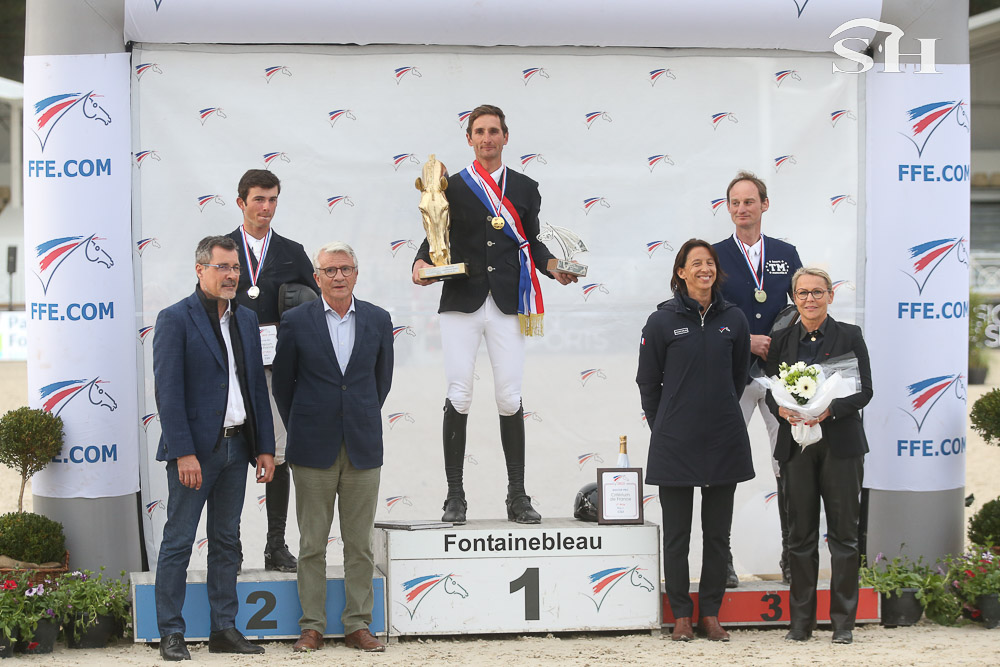 Le Printemps des Sports Equestres, à Fontainebleau, nous proposait un véritable duel pour cette finale du championnat de France Pro 1. Un coude à coude très serré entre deux étalons Selle Français! Marie Pellegrin et Deuxcatsix d’Eglefin (Vigo Cécé) en embuscade derrière David Giffon qui a tout fraichement récupéré Amant du Château (Diamant de Sémilly) en vue de ce championnat. Dans l’ultime manche de championnat, Marie Pellegrin faute et dégringole au pied du podium alors que Valentin Marcotte sur Diego del Caribe (Kannan) et le jeune et tellement prometteur Antoine Ermann sur odin van’t Hanegoor(Kiekeboe) ont tenu bon lors de cette seconde manche … après avoir fauté à la première!