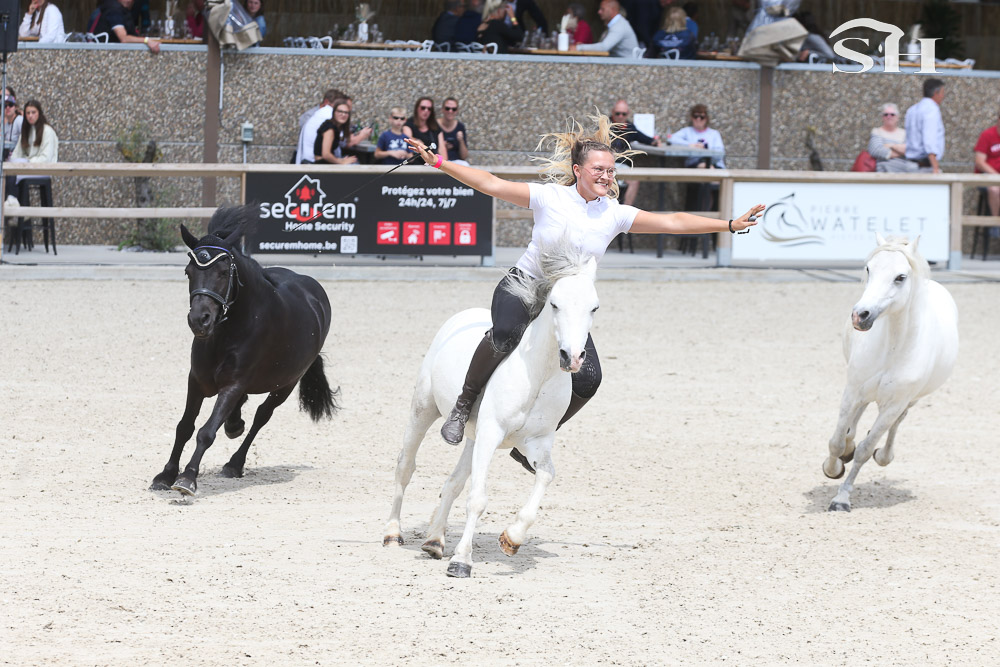 En piste, ce concours aura permis aussi à de jeunes talents de se mettre en évidence. C’était le cas des sœurs Deronne, Charlotte et Ophélie qui auront réussi de très belles prestations avec leurs ponettes à l’occasion de leurs spectacles en liberté. La jeune Robin Vermeir n’aura rien laissé sur son passage. La fille de Wilm remportant le Grand Prix poney avec Ottawa vh Verbrandgoed (Cadet) avant d’en faire de même le lendemain dans le Grand Prix * avec Copacabana of the paddocks Z (Coriano) dont la mère n’est autre qu’une sœur utérine de l’ancien champion de Belgique des 7 ans avec … Grégory Wathelet, Iqbal des Hayettes mais aussi des étalons Street Hassle et Global Express VDL.