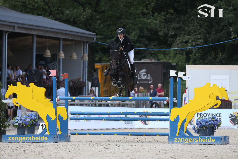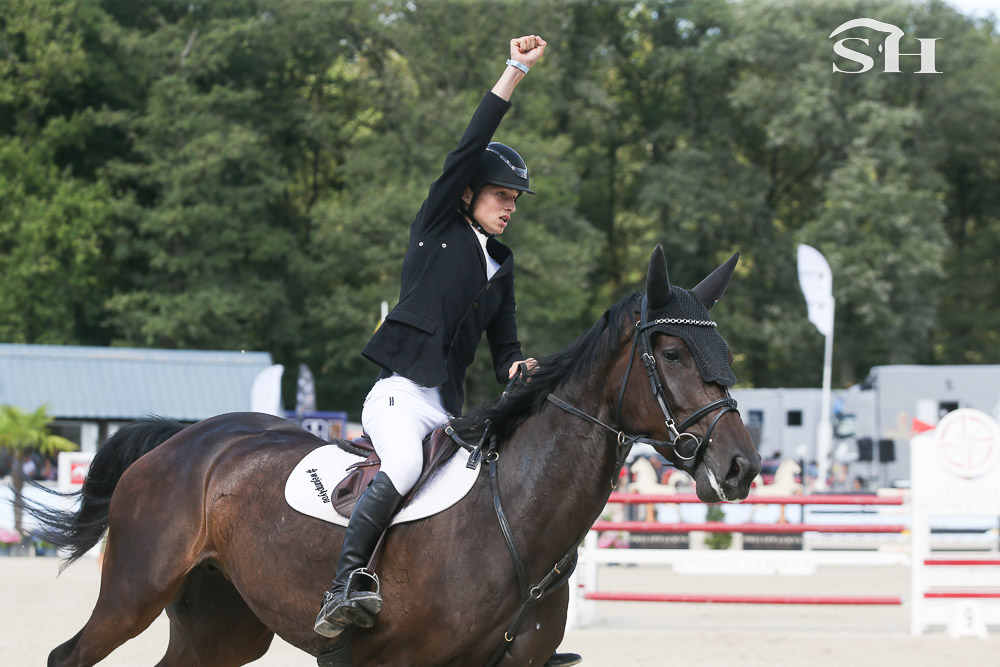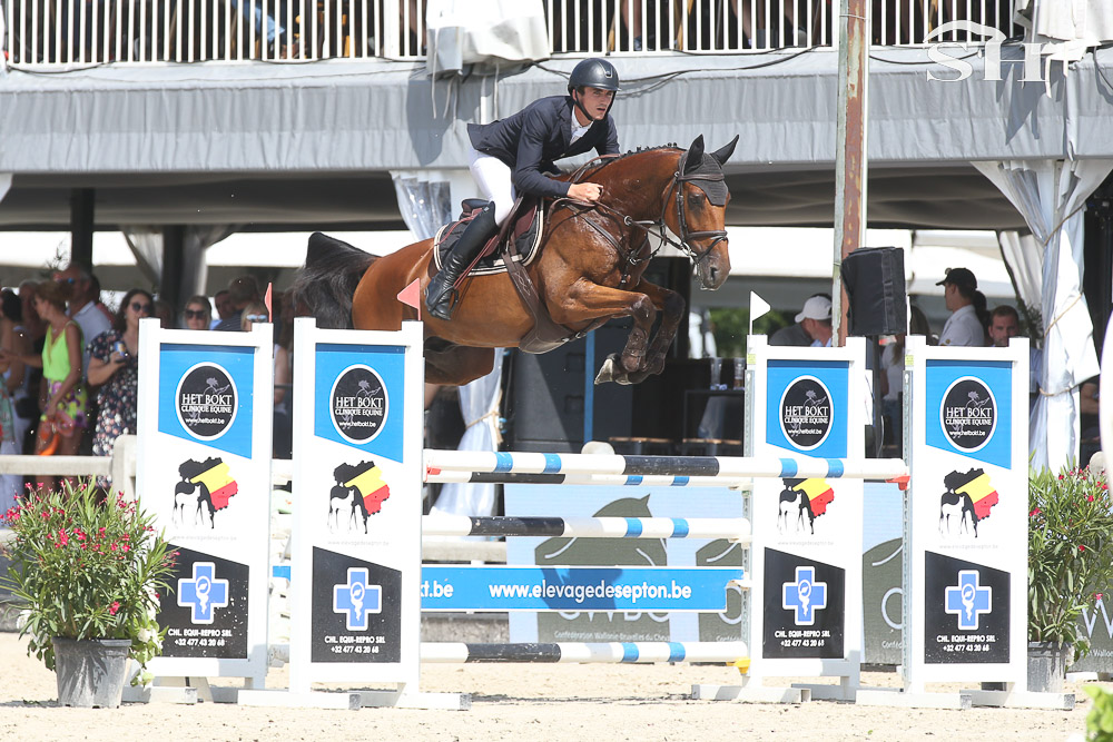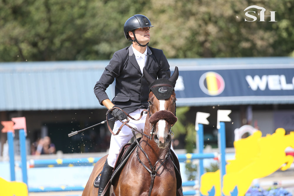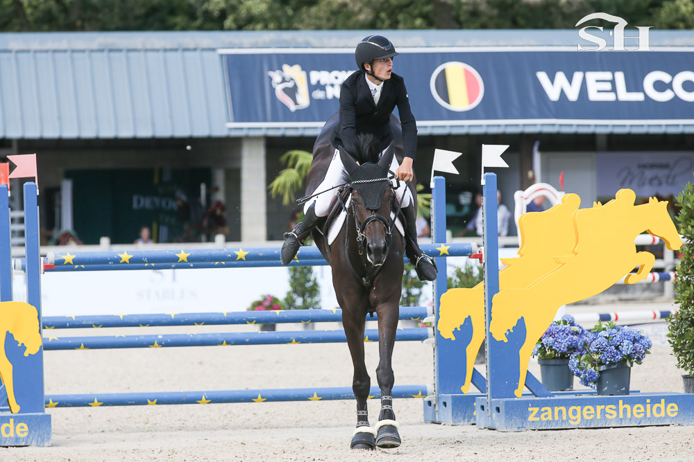 « Cela fait deux mois que je la monte. Elle est très peux xpérimentée, elle a dû faire 10 concours dans sa vie avant de venir ici. Je suis venu ici avant tout pour lui donner de l’expérience. C’est la première fois que je la monte dans un barrage. Elle n’a pas fait le cycle mais juste la qualificative. Je l’ai en co-propriété avec son éleveur. Nous nous connaissons depuis un petit temps, je monte déjà d’autres chevaux pour lui mais de souches différentes. Ici, le plan n’était pas que je la monte mais son cavalier s’est blessé et il m’a proposé de la monter. Nous ne ferons pas Lanaken … déjà parce que je suis trop jeune. J’ai 15 ans et il faut 16 ans pour pouvoir participer … puis je pense que pour un cheval aussi vert, ce championnat est bien assez pour elle. » nous explique ce jeune homme dont vous pouvez déjà sans aucun doute retenir le nom! Preuve une nouvelle fois que la Belgique ne manque pas de talents.