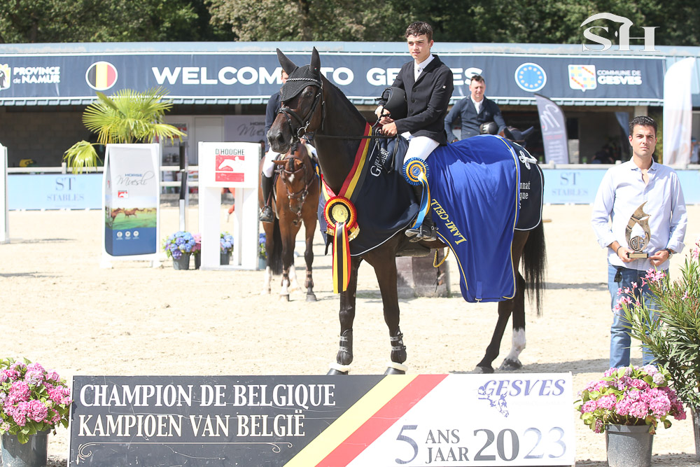 L’affaire n’est pas pliée pour autant car rentre alors en piste le tout jeune Seppe Wouters. A 15 ans à peine, le jeune homme originaire de Hasselt n’a peur de rien et réussi un barrage somptueux : 34’’19, le titre de Champion de Belgique des 5 ans 2023 revient à Libelle Asborne (Lector vd Bisschop x Calvaro).