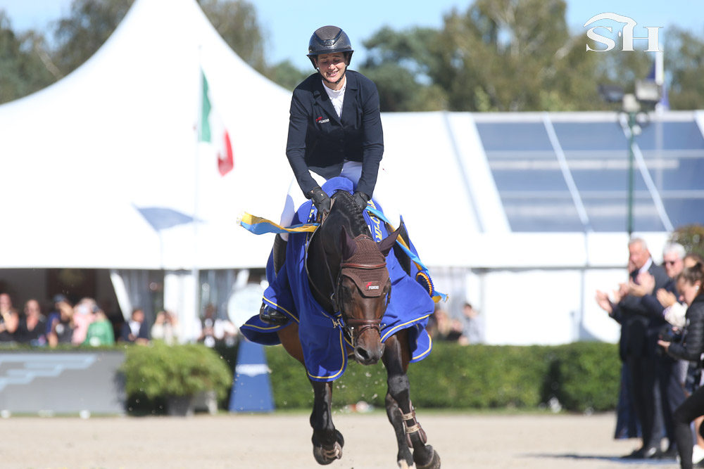 Katrin Eckermann était heureuse de cette nouvelle victoire : « J’ai eu le cheval au mois de juin. Mon père a fait tout le travail avec lui mais il a eu un accident et c’est la raison pour laquelle j’ai récupéré le cheval. Tout est allé très vite. La semaine dernière j’étais à Rome et je n’ai eu que quelques jours pour préparer les chevaux mais j’ai la chance d’avoir une très bonne équipe à la maison et d’avoir été aidée notamment par Franke Sloothaak qui a monté le cheval. J’ai eu un bon barrage et le cheval est très rapide et très intelligent, toujours avec son cavalier ce qui rend mon travail plus facile. Il a beaucoup de qualités et j’espère pouvoir le conserver. », confiait la cavalière allemande qui avait déjà remporté l’or dans cette catégorie en 2019 avec la très bonne Chao Lee.