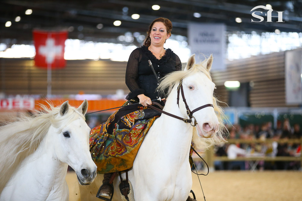 « Pour moi, c’était important en revenant à Equita Lyon de présenter plusieurs facettes de notre travail. Être présent à Equita Lyon, cela permet de faire beaucoup de rencontres et pas mal de contacts. D’autant plus que nous ne sommes pas très loin et que maintenant que nous avons notre structure, nous organisons des journées de stage à thème. À côté de ça, nous débourrons aussi des chevaux de toutes sortes pour des gens qui ne veulent plus que ce soit fait n’importe comment. Je réalise aussi beaucoup de stages en Suisse pour aider des couples selon leurs besoins. Cela peut aller du travail à pied jusqu’à la haute école en passant par le travail en liberté. Aujourd’hui, mon objectif est évidemment d’utiliser plus notre structure pour pouvoir être présente pour notre fille en bougeant un peu moins et aussi parce que depuis le covid, les spectacles sont moins nombreux. »