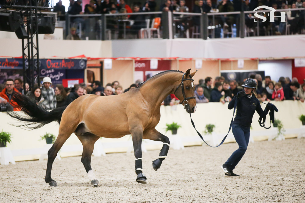 Conceptrice de l’affiche de ce salon et collaborant avec l’équipe organisatrice, la cavalière et photographe Marie Sapin fait son petit bout de chemin dans l’élevage avec son ancienne jument de Grand Prix Fioretta van’t Eigenlo. « Pour moi, c’était beaucoup de travail puisque j’ai la chance de collaborer depuis cinq ans avec l’équipe très dynamique et très agréable du pôle hippique pour la création graphique de l’affiche du salon mais également en faisant les images et depuis cette année des vidéos pour faire vivre l’évènement à 360° sur les réseaux sociaux où nous voulons montrer autant ce qui se passe sur la piste que dans les écuries. Chaque année, il y a beaucoup de monde mais chaque année, on a l’impression que ça augente ! Cette année, les tribunes ont été pleines du vendredi au dimanche sans oublier qu’il y a énormément de monde qui se promène en permanence dans les boxes et sur les stands autour de la piste. Cela me change vraiment des évènements sportifs car ici, il y a bien un peu de public mais on sent qu’il y a surtout de très nombreux professionnels du milieu. Ce sont vraiment des gens de chevaux qui sont présents. Cette année, ma jument est pleine de Quel Homme de Hus (Quidam de Revel x Candillo) qui n’était malheureusement pas présent. On connait évidemment les légendes de notre sport mais c’est aussi l’occasion de voir évoluer de jeunes étalons et de voir leur évolution. A ce titre, j’étais heureuse de revoir Pegase van’t Ruytershof (Comme Il Faut x Cartani) et Coldplay des Rosiers (Cornet Obolensky x Cardento) qui m’ont encore beaucoup plu cette année. C’est également toujours un plaisir de retrouver Consul de la Vie Z (Clinton x Heartbreaker) qui est toujours impressionnant à son âge en montrant beaucoup de vivacité et une véritable joie de vivre. C’était aussi un plaisir de voir Chaplin (Verdi x Concorde), l’ancienne crack de Martin Fuchs. Deux chevaux m’ont marqué ce week-end, il s’agissait de deux découvertes pour moi : Chavez Z (Cicero Z van Paemel x Chellano Z), le cheval de Max Thirouin qui était monté par Stéphane Dufour et l’étalon de Bernard Briand Chevalier, Herald d’Emmeraude (Emerald van’t Ruytershof x L’arc de Triomphe) dont l’évolution me plait beaucoup. »