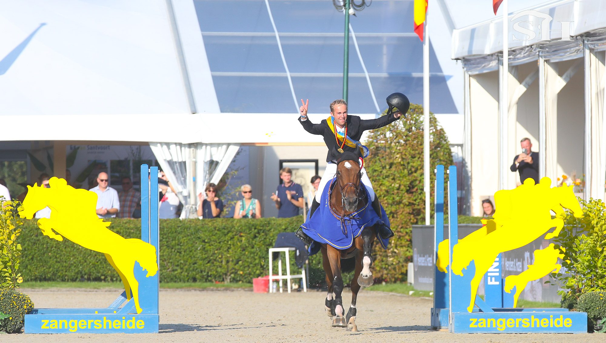 Devant Gilles Thomas ne tremblera pas. Le public frissonne mais pas lui ! Il emmène Luna vh Dennehof (Prince vd Wolfsakker x Quidam de Revel) vers le titre ! Le deuxième d’affilée pour le jeune homme un an après sa victoire écrasante avec l’étalon Ermitage Kalone.