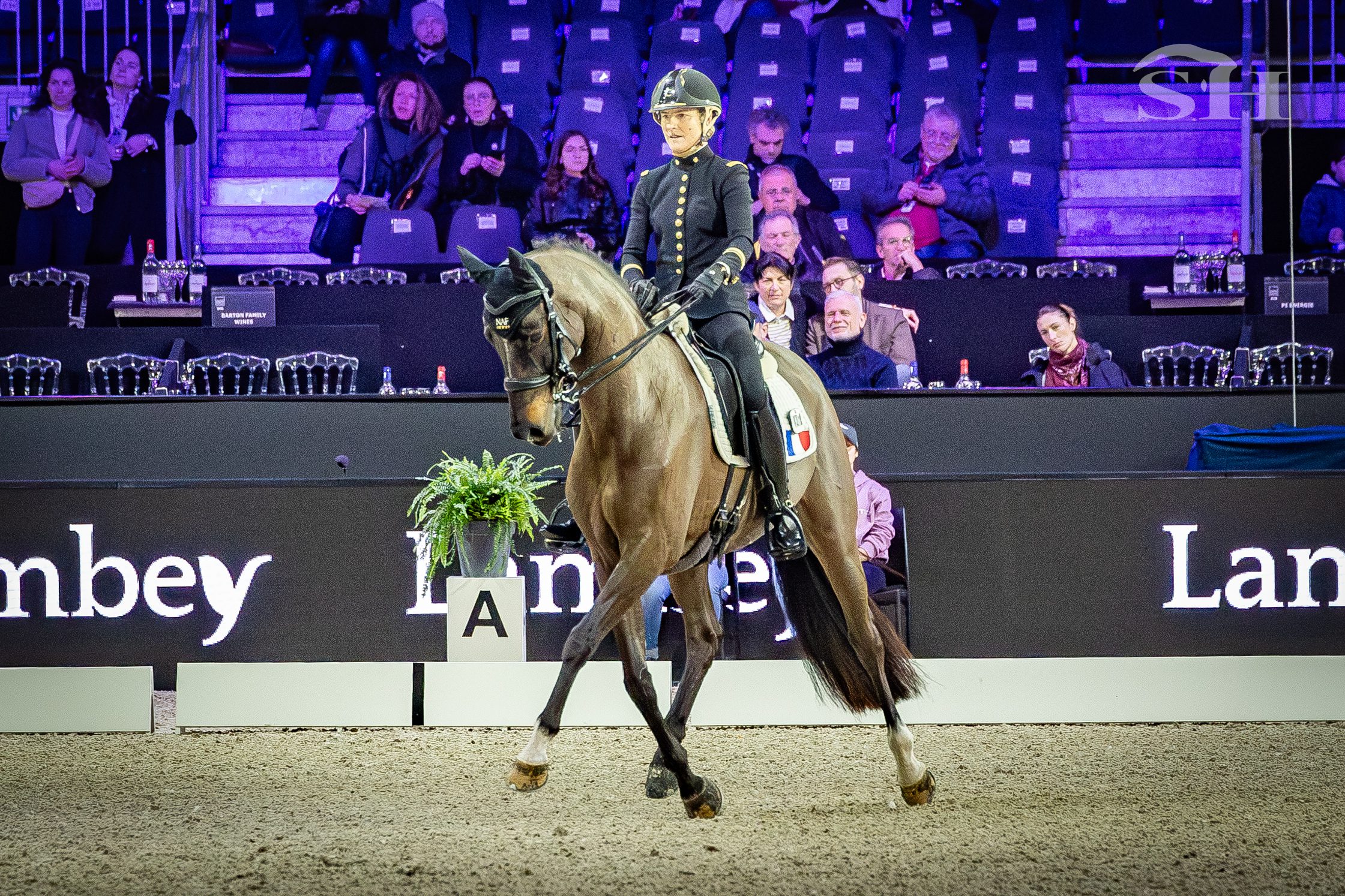 À 65 millièmes près, Pauline Basquin aurait pu écrire une autre histoire. En selle sur Sertorius de Rima IFCE (Sandro Hit x Volataire), la Française termine deuxième avec 71,065 %, au terme d’une reprise volontaire mais assumée comme une reprise de construction.