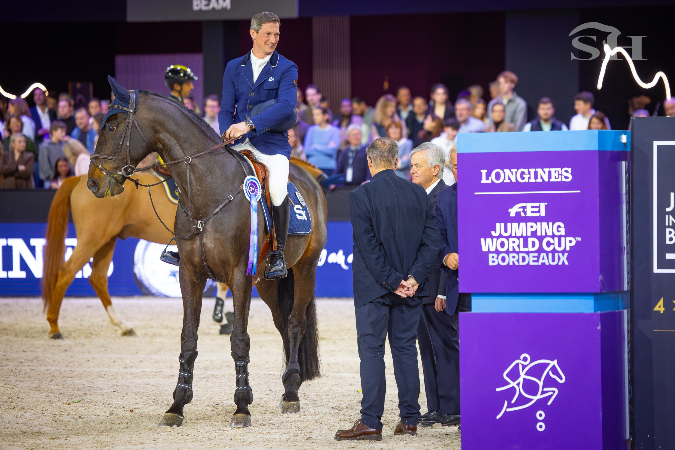 Troisième au classement final, Tom Schewe est sans doute celui dont la présence sur le podium était la moins attendue. Et pour cause : rien, ou presque, n’avait été planifié. Le déplacement à Bordeaux s’est décidé tardivement, à la faveur d’un désistement. Un appel. Une opportunité. Et un choix assumé de faire confiance à un cheval de neuf ans dans l’un des Grands Prix les plus exigeants du circuit. Mais le garçon sait surprendre. Vice Champion d’Allemagne, son premier Grand Prix cinq étoiles il l’avait sauté en 2025 à…Aix-la-Chapelle. Un petit 4 points à la clé.